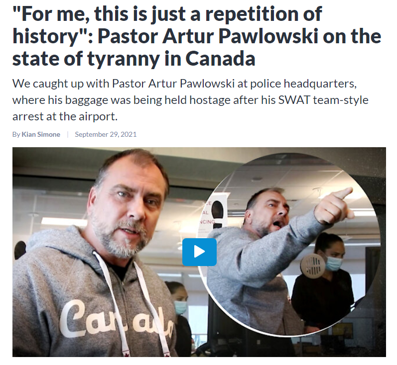No “mainstream news outlet” here, notably our government funded and completely corrupted CBC, has given Pastor Artur or any of the many people who have been roughed up, arrested, fined and persecuted, any publicity. There has only been Rebel News to put cameras on the police to embarrass them. They know very well they are doing wrong.