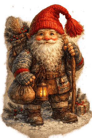 The red cap is tied to the Nisse, a gnome-like guardian figure in Norwegian folklore, connected to farms, home, and Christmas traditions. Nisser are basically always pictured in that bright red cap.