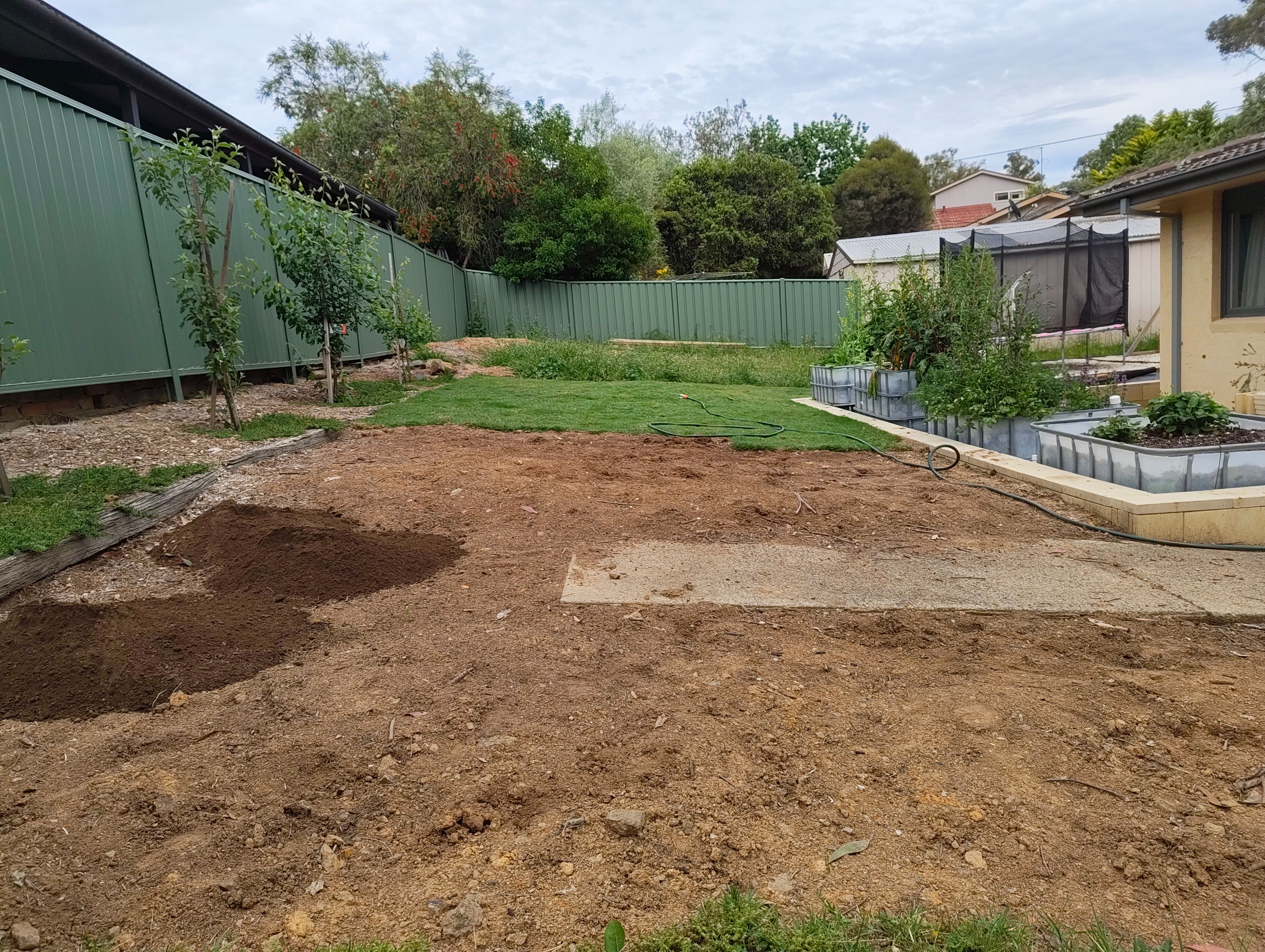 Okay... a few days spare over since the end of our last ensemble concert and before the start of the next project, and I have time to keep moving on our lawn project in the backyard!