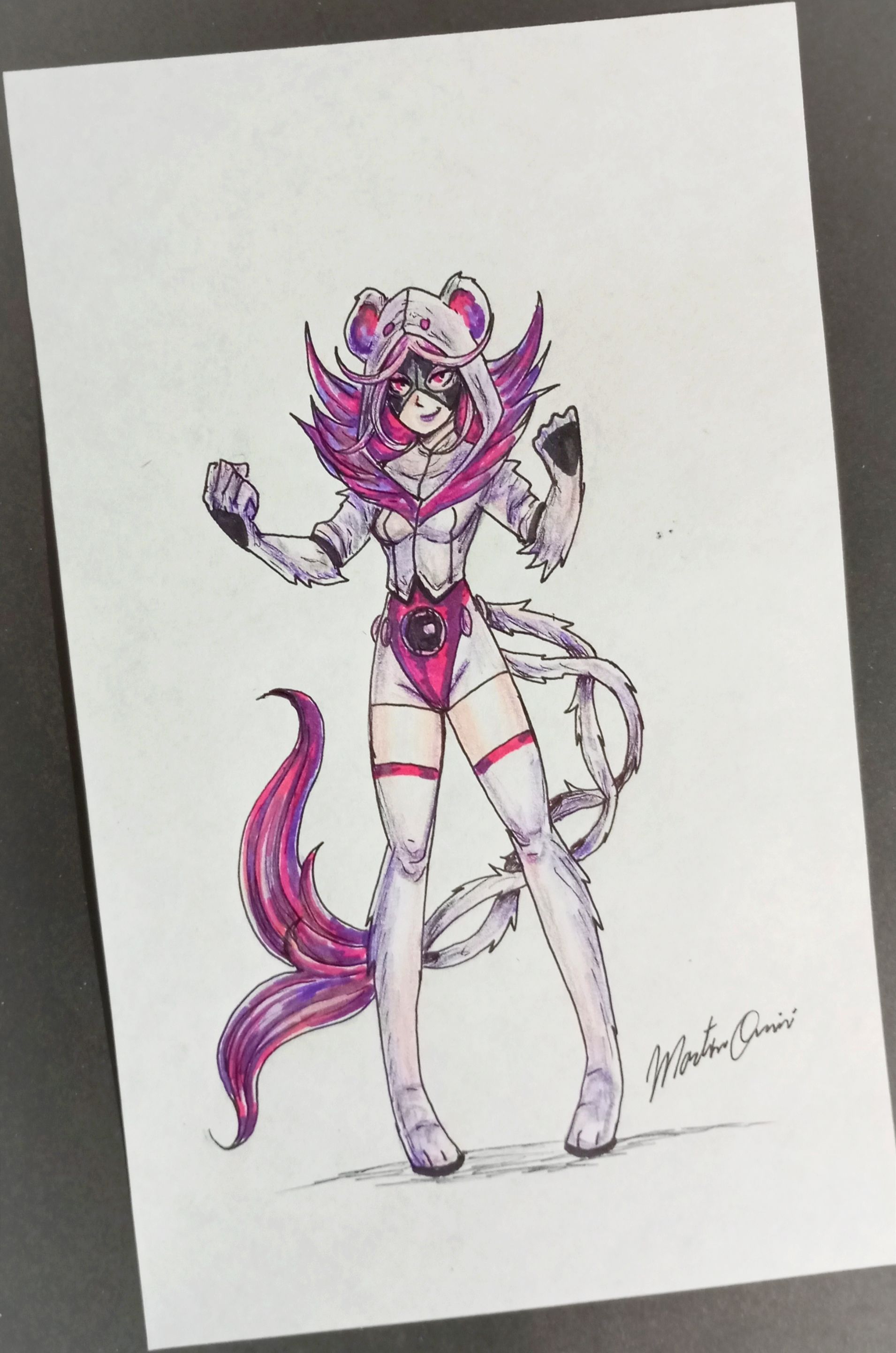 Happy Friday, friends of @holozing. Here I start with coffee and a new character and fanart. Once again, I took #ermo as an example and created a female version, like a superhero in a somewhat anime style. I designed her costume based on the creature but adding some details that might remind me of My Hero Academia. I think I achieved a nice result. Now, as always, I'll show you the process.