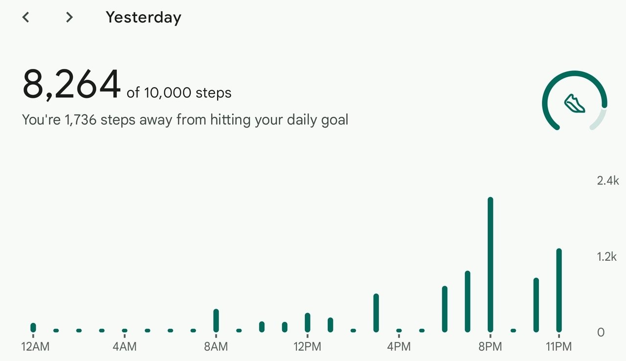 The game started at 9pm and ended around 11pm, so that explains why the majority of my steps came so late last night. At least I'm getting closer to 10K again. It's been too long. Until next time...