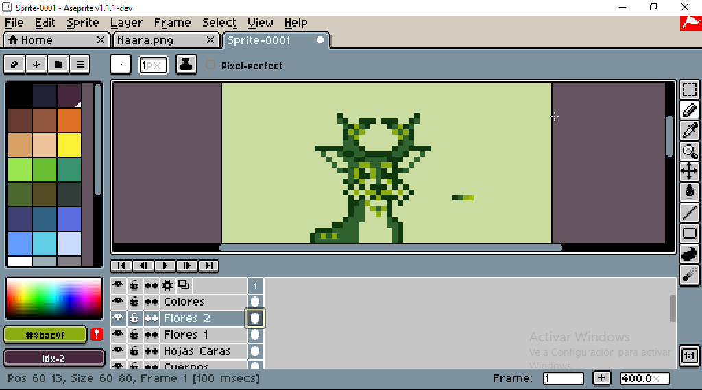 - Después probe varios con diferentes configuraciones de los colores hasta tener la cabeza de Naara como más me gustara.
