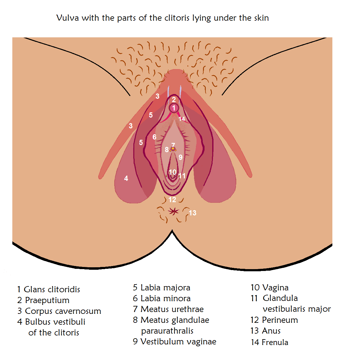 Back to the women who are shy about their vulva because it doesn't look like what they see on posters, the reality is that there is almost no vulva as perfect as that. The labia could be bigger, longer, the clitoris could be bigger or smaller, and the hair above can be curly, straight, or bushy. To the question of wetness which I know a lot of you want to ask, when the female is aroused, blood flows to the vagina Bartholin’s gland, and the Skene’s gland to produce lubrication for the vaginal opening.