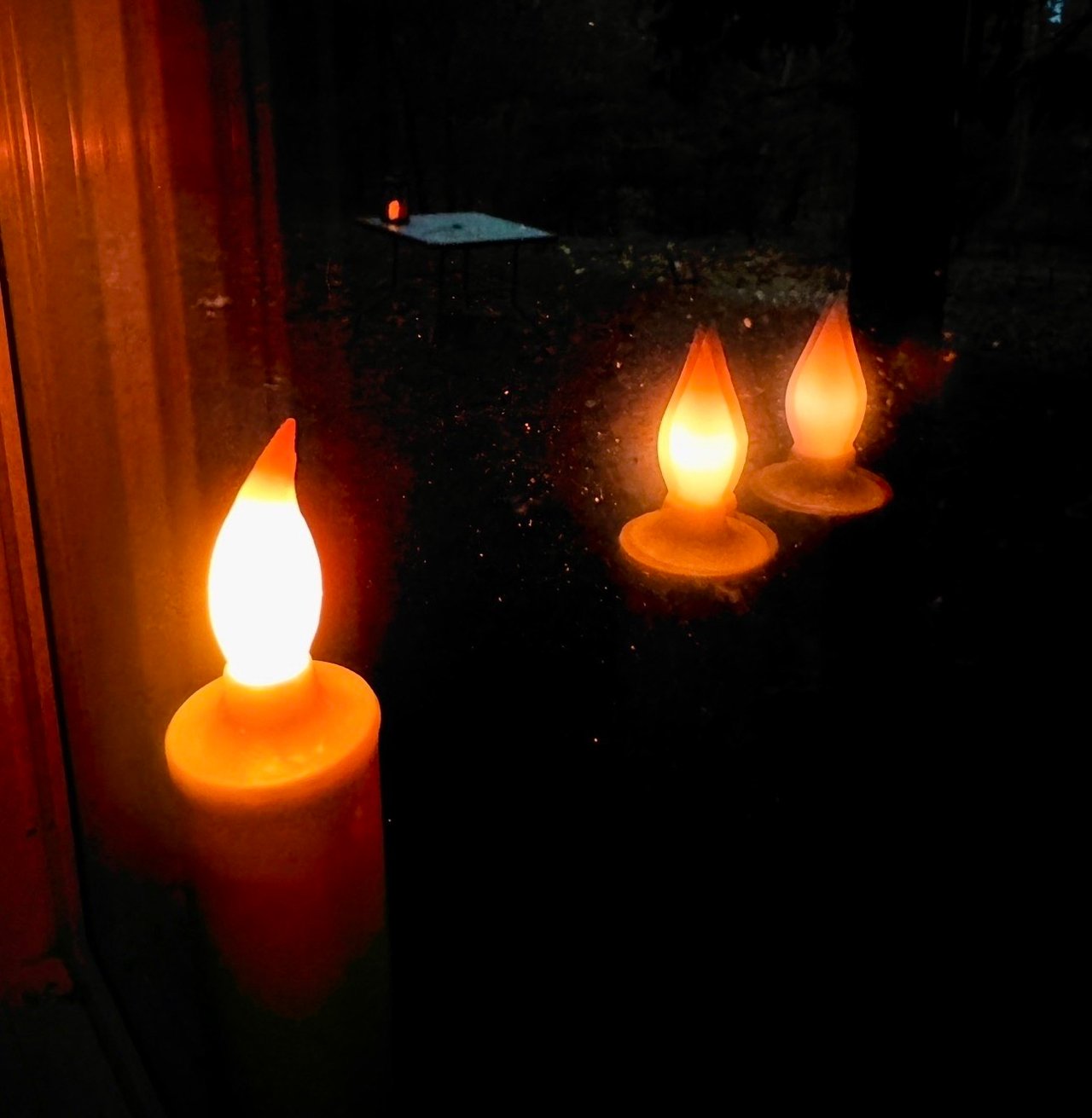 The double panes glass gives the impression in the picture of three candles. 🕯️🕯️🕯️