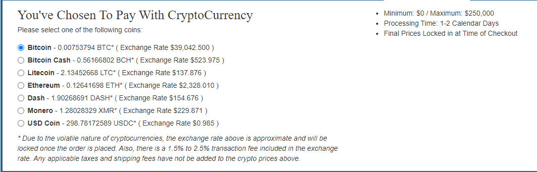 Since I'm on the topic of Money Metals, I have never used their services before. You know how APMEX accepts BTC and BCH for payments? These guys accept other cryptos as well. To my surprise, they actually take XMR and Dash. I don't know what that means for taxes, but I may look into it later.