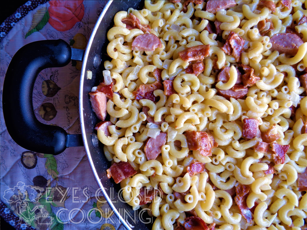 This is one of those dishes I make a few times a month because it’s so easy and cheap. I usually always have the ingredients on hand so if I need to throw something together quick, this is my go-to recipe. It also works great with any shaped pasta. In my pictures you’ll see elbow and egg noodles. But I’ve also tried it with bow-tie and spiral rotini in the past.