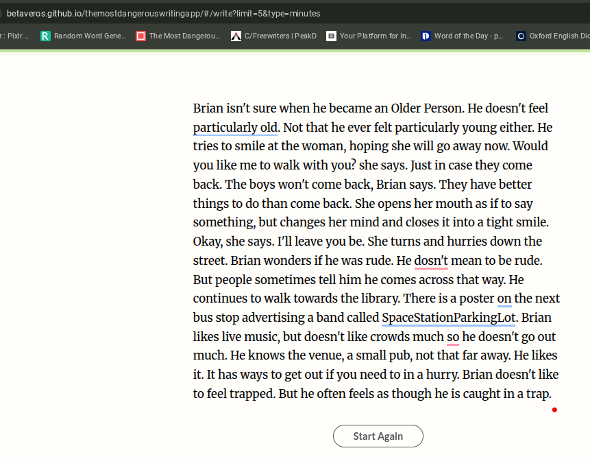 Spacecraft Parking Lot, a five minute freewrite (Brian, Part 4)