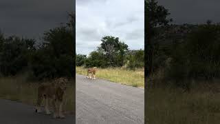 So, we decided to turn left, take the chance, and then we saw something walking toward our car, two or three lions. We had the best view in the house, as behind the two lions various cars stood, on the lookout for the same view we had. We did not look for these lions, we were looking for a bathroom, but now we had the best view...