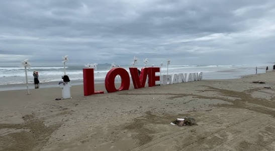 This image is from a few years ago in the aftermath of the storm, called Kajiki, did so much damage. That I heart Da Nang sign is normally about 2 meters above the sand line and there is a rock wall between it and where the sand normally is. It is safe to say that this storm was really violent.