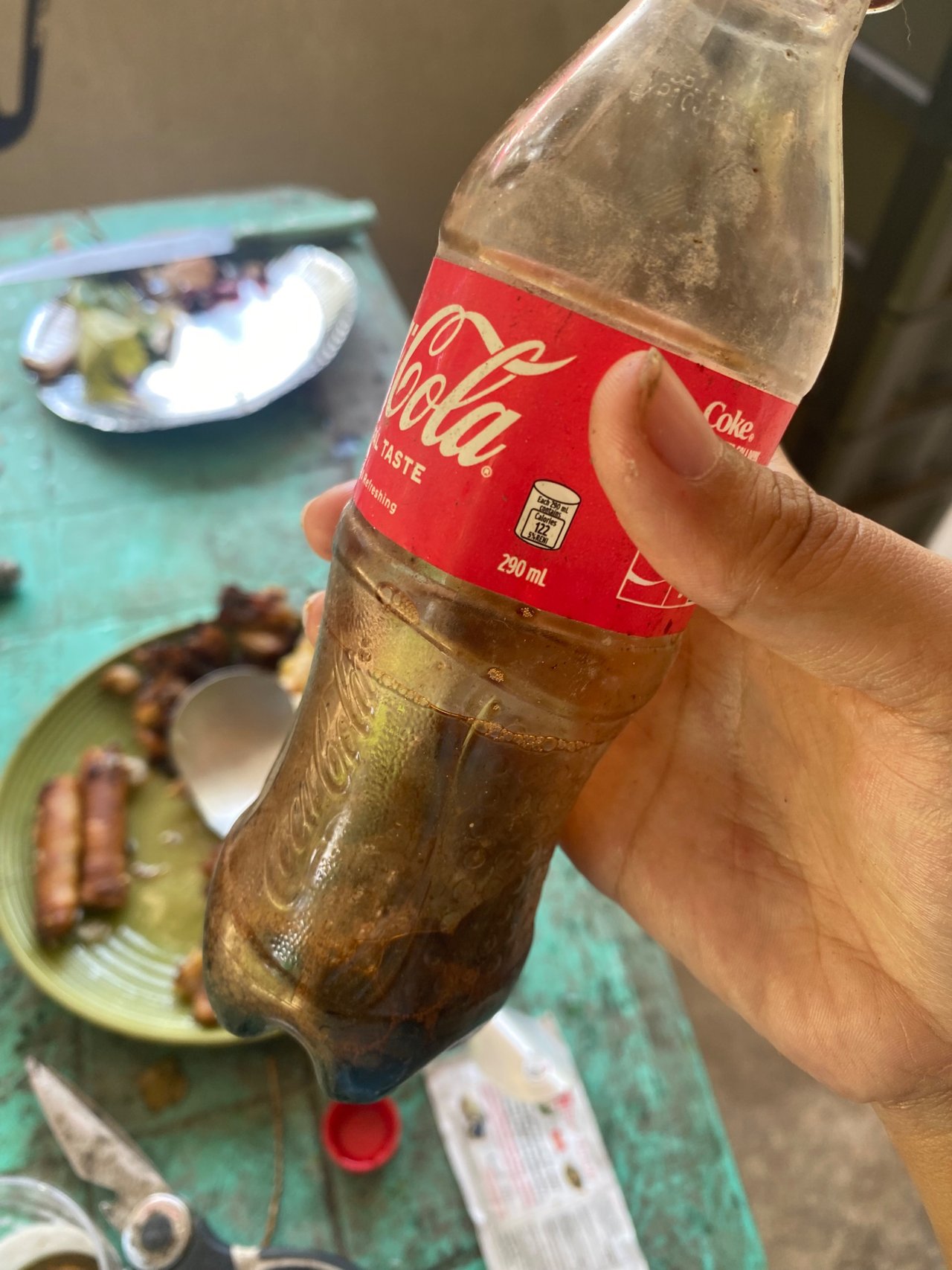 She just wanted to buy a 1 kilo of spinach and when I put it in the scale it was more than 1 kilo so I took the extra and I remembered that I really wanted to cook some water spinach. I then bought soy sauce at the sari sari store and prepared the ingredients.
