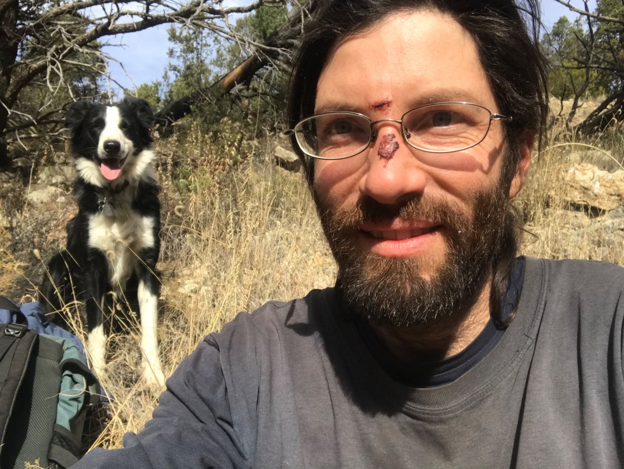 Both she and I, and especially Dakota, all appreciated a longer hike in the woods, and the high desert scenery was as gorgeous as ever - on this particular trail, a nice mix of cacti, rock, and forest, with a slightly more desert feel to this area than the trails a bit higher up the mountain towards our place.
