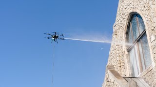 The era of painters suspended on scaffolding could have its days numbered. The American company presented the new painting model called Sherpa drone, capable of spraying paint on facades and skyscrapers with impressive speed, painting 18 m² per minute, reducing costs by half and increasing safety at extreme heights.