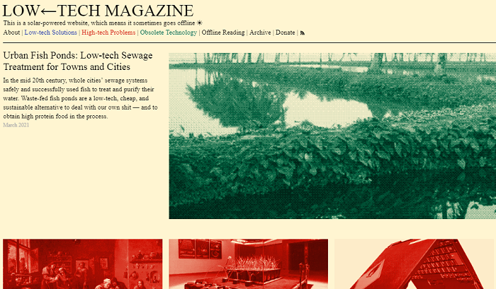 The website will now work with solar panels on the owner's balcony in Barcelona Spain, also compared to most sites that update every time someone visits us, Low Tech Magazine is now a simple and static website that only generates once and simply exists as a document network on a laptop.