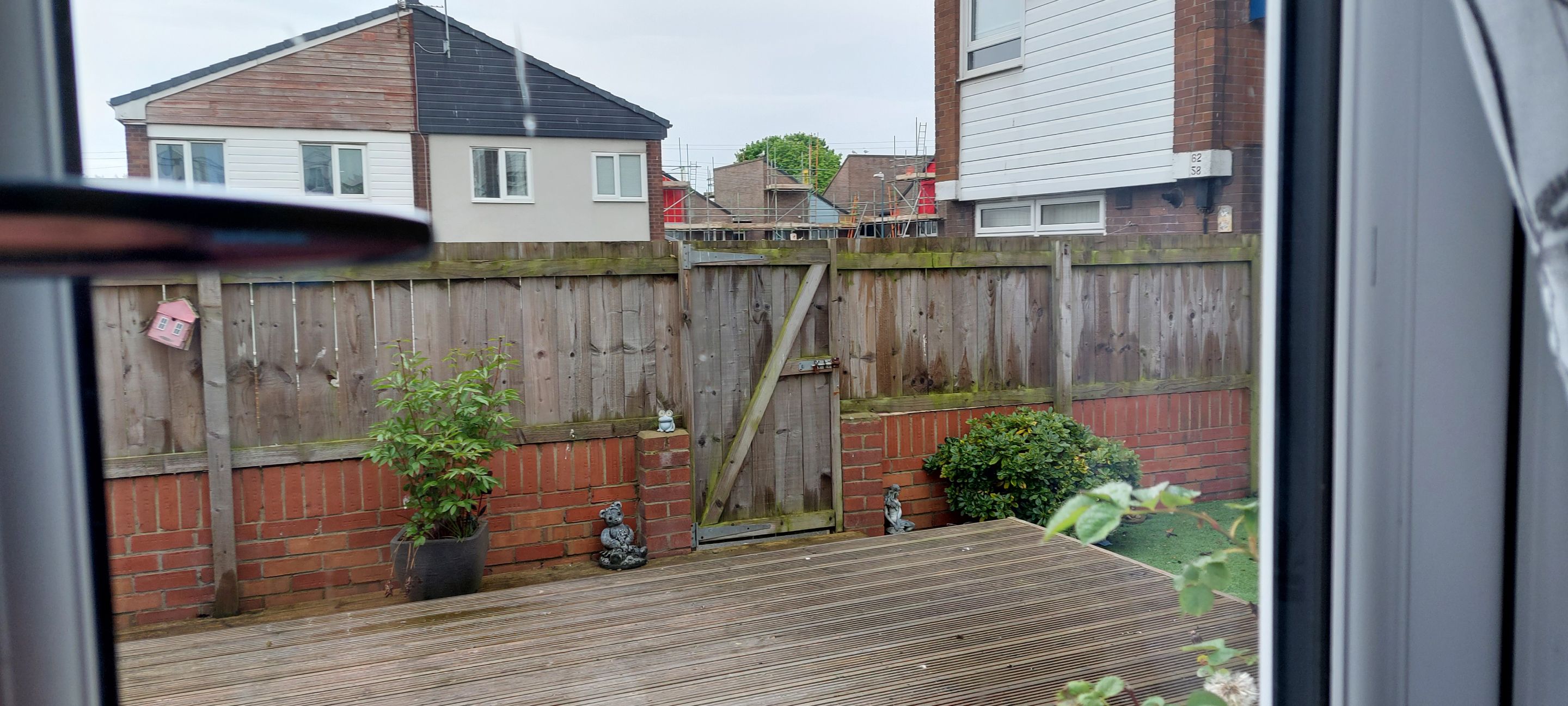 Its not a nice view slightly better since we added the decking and fencing. When we bought this house we were told the flats on the right hand side are coming down 34 years later there still here. When we first moved in the flat were filled with people they couldn't find houses for, nuisance neighbours, drugs and drink thankfully now they are filled with families and people who care about the area. We don't have any trouble from them apart from not having any privacy in our gardens. We did get a garden bargain when buying the house, it cost us Β£32,000 now its worth Β£125,000 not a bad investment. But that me and hubby will enjoy the money we are leaving it all to my daughter Nichola.