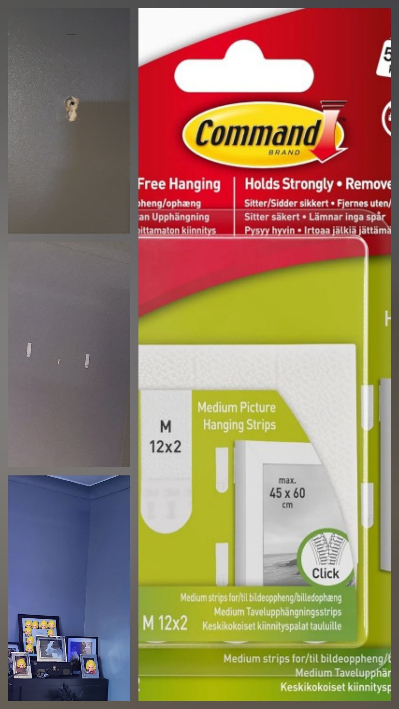 We have at last started on putting my granddaughters photos onto the wall, this has been waiting to be done for ages, then after the problem we hit that I mentioned in my post, &the one before my last one.* The first photo is up using the Command stickers I bought. These stick to the wall then the photo has the same stickers in the corners, they stick together like Velcro. You first have to add them to the photo then place on the wall using a level then gently pull the photo upwards to release the hold leaving the wall sticker, you then have to rub the stickers for 30 seconds then leave for an hour before positioning the photo.