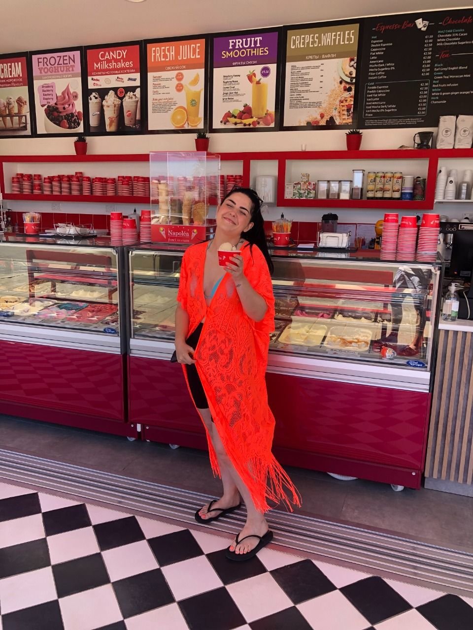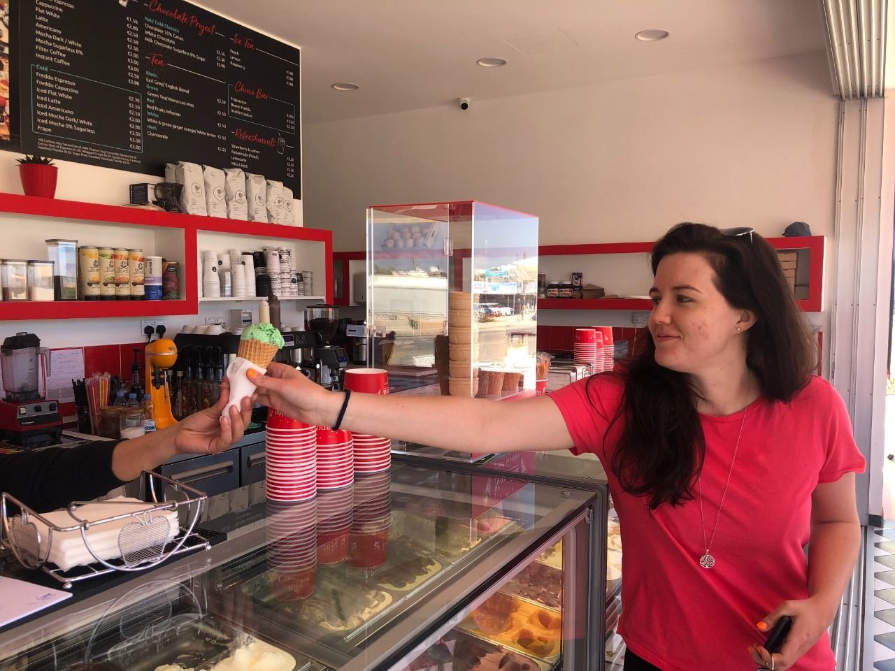 On the way there we stop for ice cream. My sister got a chocolate mint ice cream, whilst Kiara got a salted caramel ice cream.