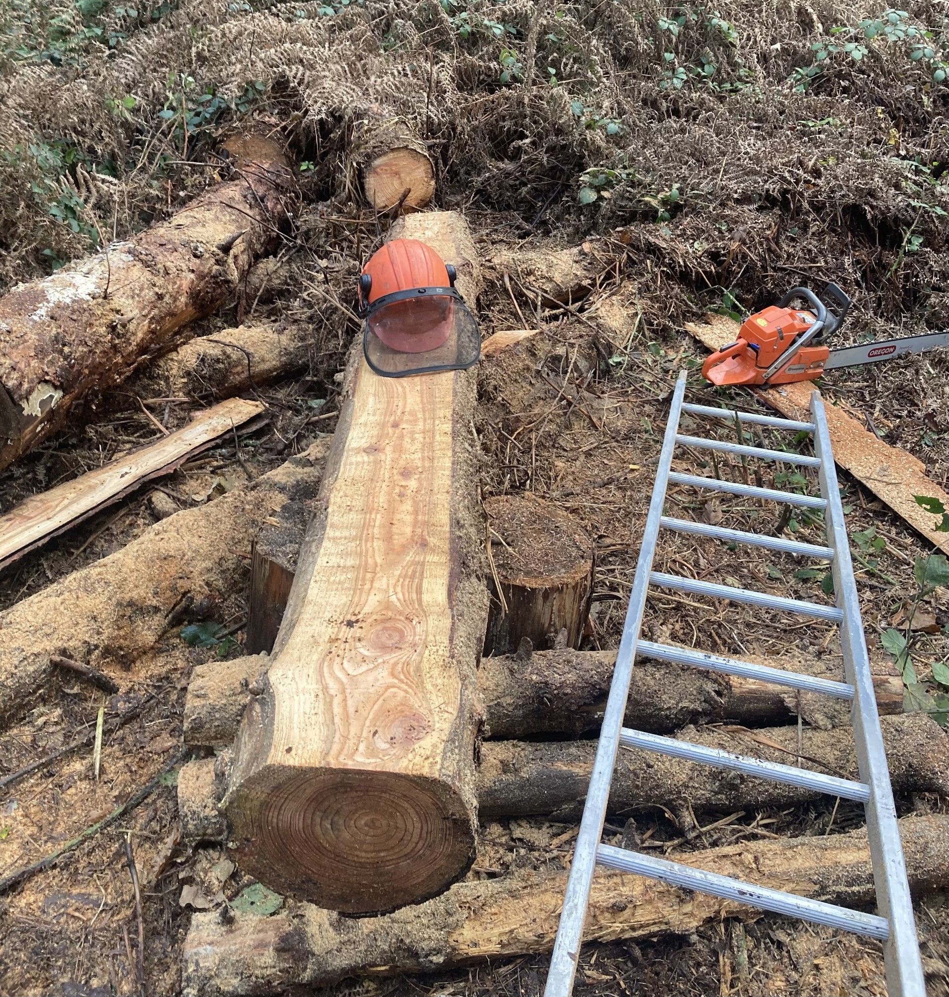 We used a Husky 365 chainsaw and an alaskan saw mill to make the posts. The slabs were cut 3inch deep so we could used a 3" circular saw to cut the posts from the slabs