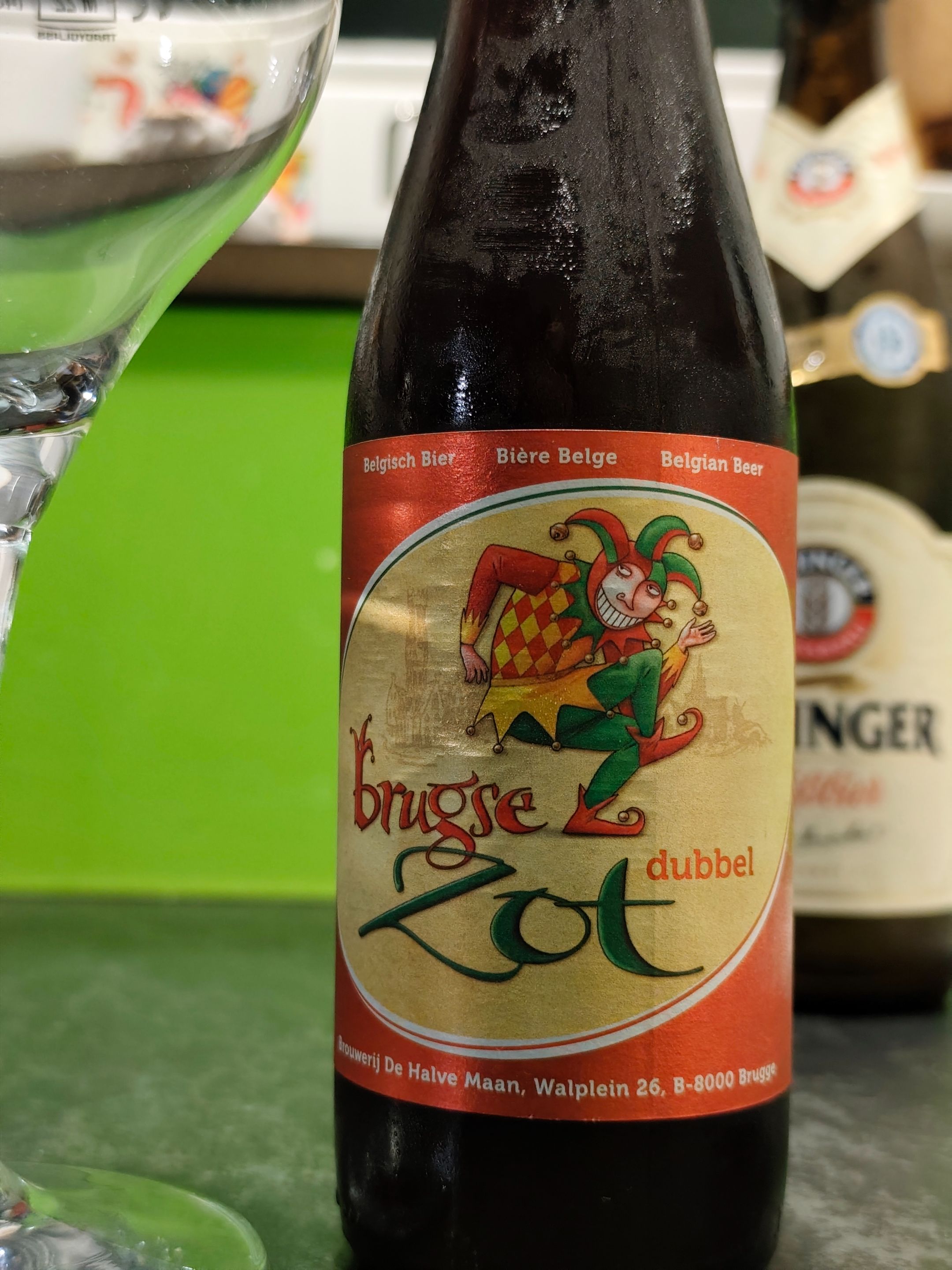 Hey everyone. I'm here with a fresh new beer from Belgium. This time it's an beloved dark beer, which is one of my favorites. A Brugse Zot dubbel served by the lovely @detlev. The beer has a interesting alcoholic of 7.5%.