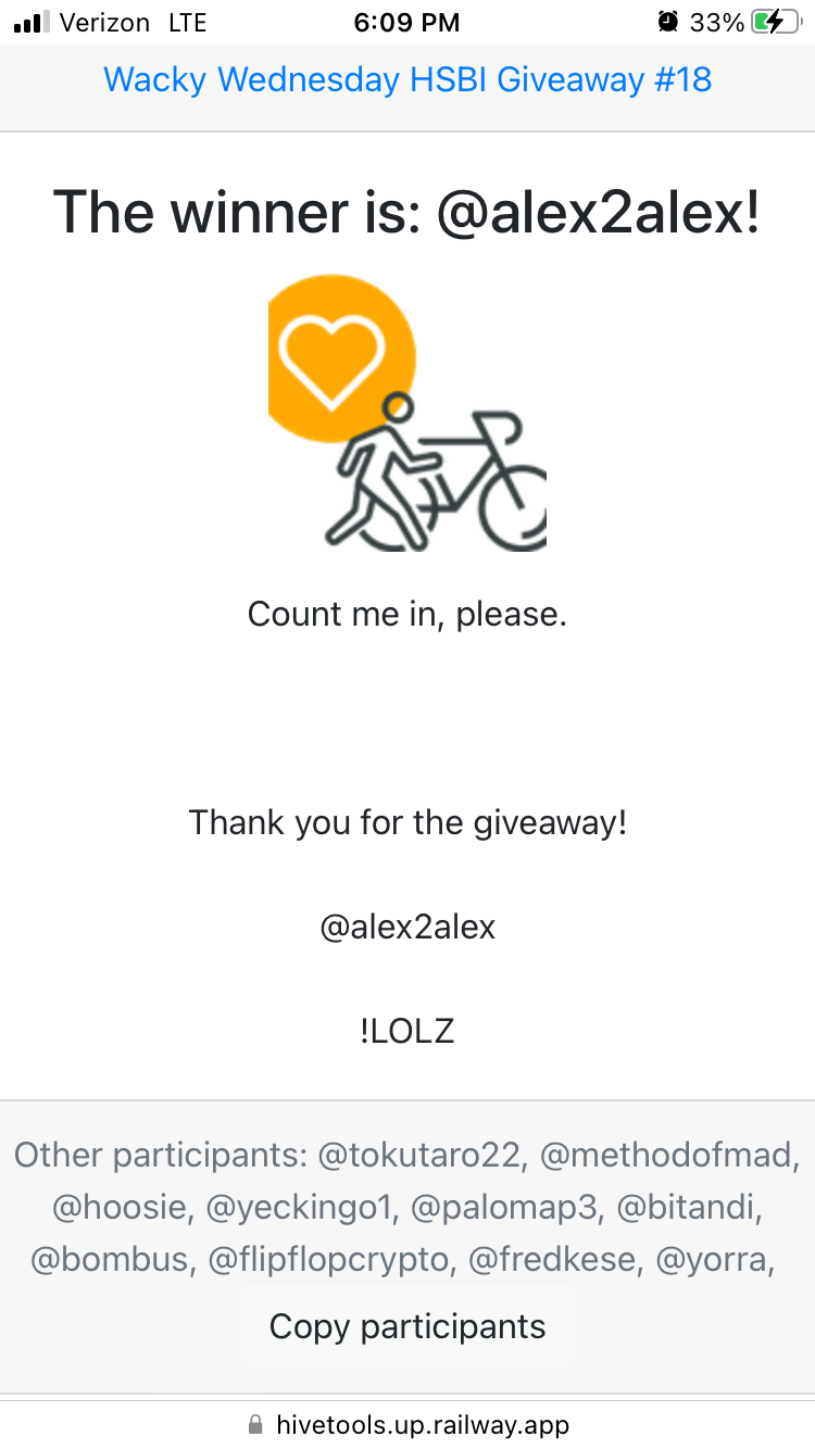 Winner Wacky Wednesday HSBI Giveaway #18