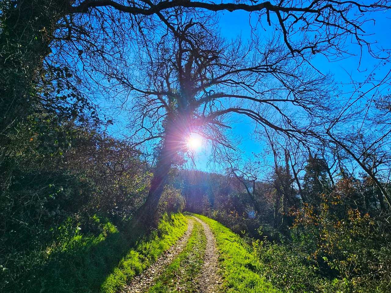 The sun was still bright, even through the trees.