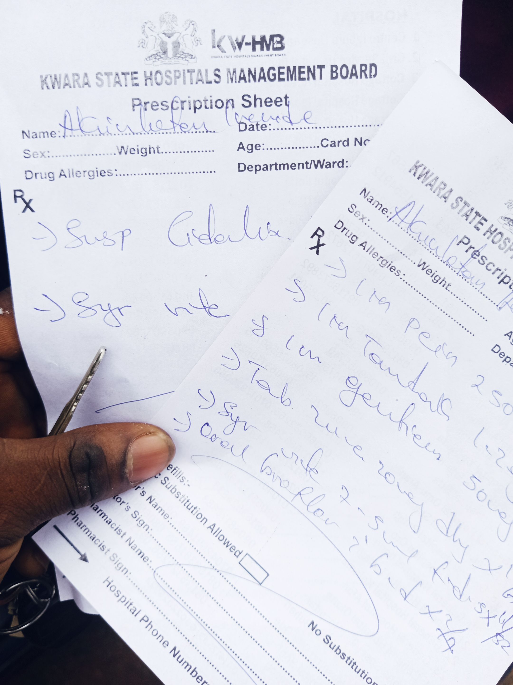 So we went to the lab. That was when we explain that we already went to the children specialist hospital with some particular informations. So we were told not to duplicate it anymore.