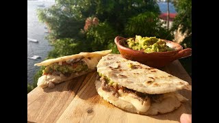 - Place a tortilla on the griddle, sprinkle generously with Oaxaca cheese, add carne asada, then more cheese. Top with another tortilla.