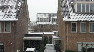 After the blood collection we went to pick up some groceries before we headed back home again . And then it started to snow again, this time even the balcony got a thin layer of snow.