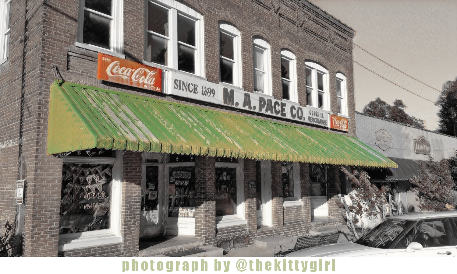 I parked in the downtown area and walked the sidewalk outside the store-fronts. Two of the stores were very old,