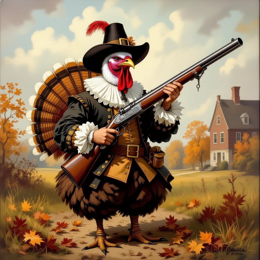 to generate an image of a turkey wielding a blunderbuss. Turkeys in the pioneer days were notoriously tough. I thought the image would make a fun #meme .I live in the Western US. HIVE operates on UTC and the UTC Thanksgiving is over before our Thanksgiving Dinner begins; So, I cannot show images of the feast only the preparation.