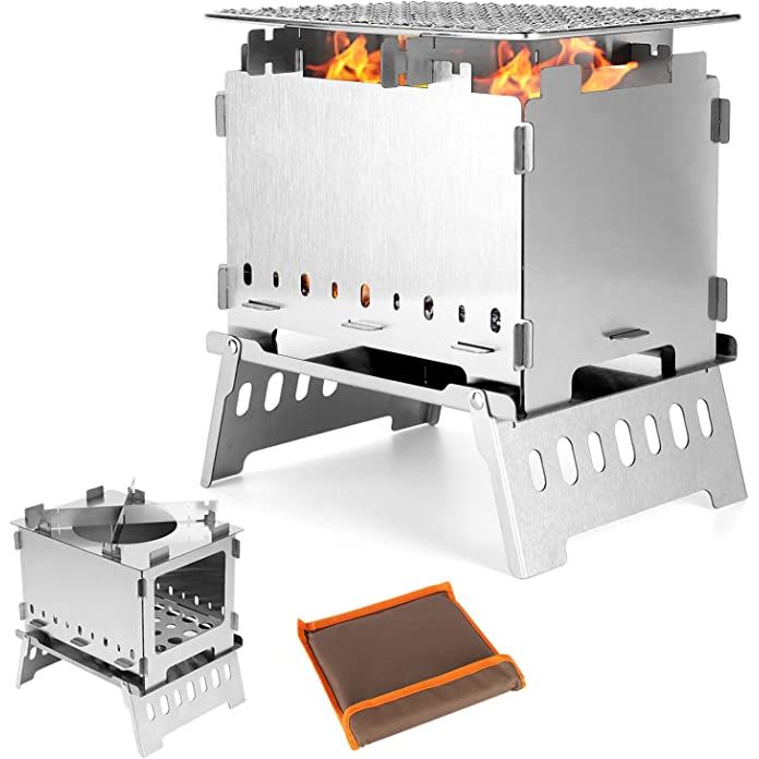 The Odoland Portable Stove Camping Campfire Grill Pit is a versatile and highly portable wood-burning stove that is designed for use in a variety of outdoor settings. It is made from durable stainless steel and features a foldable design that makes it easy to carry with you when you are out on a hike, camping trip, or other outdoor adventure.