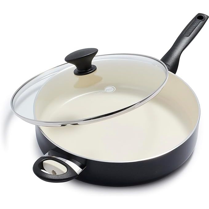 Experience the reliability and practicality of the GreenPan Rio Healthy Ceramic Nonstick 5QT Saute Pan Jumbo Cooker, a non-toxic and easy-to-clean solution for your culinary needs. Its thoughtful design and ample size make it a valuable addition to any kitchen, providing a safe and efficient cooking experience for you and your loved ones.