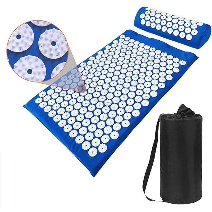 The blue color of the mat adds a touch of style and relaxation to your daily routine. This set can be a great gift for women who are looking for a natural way to relieve stress and tension in their bodies. Using the XiaoMaGe Acupressure Mat and Pillow Set can help you relax and unwind after a long day. Description by ChatGPT.