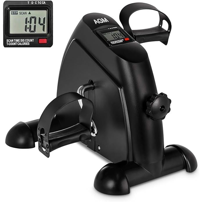 A Mini Exercise Bike, such as the AGM Under Desk Bike Pedal Exerciser, is a compact and portable piece of exercise equipment that allows users to engage in low-impact aerobic exercise while sitting down. This type of bike is designed to be placed under a desk or table, allowing users to pedal with their feet or hands while working, watching TV, or reading.