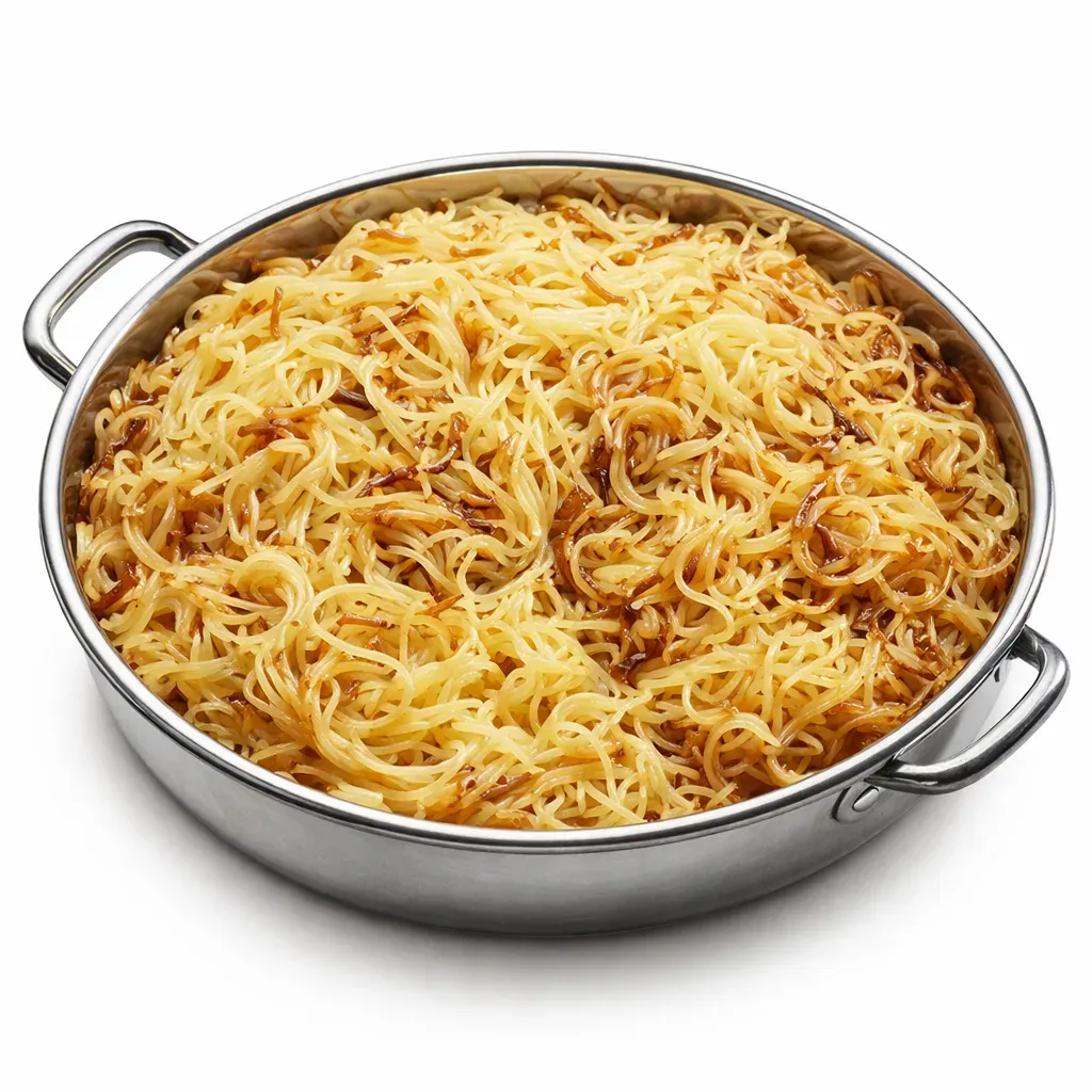 Balaleet is a beloved Bahraini breakfast dish, perfectly blending sweet and savory elements. This unique dish features golden vermicelli delicately flavored with cardamom and rose water, served over a plain egg omelet. Experience a taste of Bahrain with this straightforward yet delightful recipe.